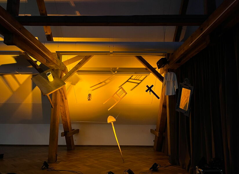 Obwohl es kein klassischer Theaterauftritt war, richteten die Schauspieler eine Bühnenkulisse aus Gegenständen ein, die vor den Augen der Zuschauer abwechselnd leuchtend gelb oder weiß angestrahlt wurden. Die Gegenstände auf der Bühne wurden aus zwei Gründen integriert: Den Augen sollte dennoch etwas gegeben werden und kleine Szenen seien dadurch trennbar, erläuterte Dennerlohr. Die Gegenstände wie Spiegel, Kreuz oder Schaufel sollen darüber hinaus die Eitelkeit, Schönheit oder Religion darstellen, die im Stück eine Rolle spielen, ergänzte er. Zwei weitere Aufführungen von „Magdalena“ seien noch geplant.