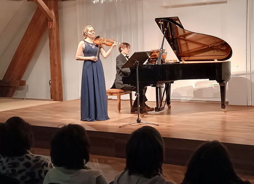 Bei ihrem knapp 90-minütigen Auftritt im Bürgersaal zeigten sie die Entwicklung der Sonate für Violine und Klavier – und begeisterten die rund 50 Zuhörer bereits nach dem ersten Satz. In Brahms zweiter Violinsonate bewiesen die Musiker, dass sie Instrument und Zusammenspiel beherrschen. Passend zu den tänzerischen Elementen in dem Stück spielte Huber die Töne so sanft, als perlten sie wie Wassertropfen vom Flügel. Brem zupfte, hämmerte, streichelte mit ihren Fingern über die Saiten, doch die Melodie und Stimmung des Stücks spiegelte sich auch in ihrem Gesicht: Mal blickte sie nachdenklich, mal erleichtert und lächelnd ins Publikum. Blickkontakt zwischen den Musikern gab es kaum. Ihre Einsätze stimmten – teilweise so perfekt, dass beim blinden Zuhören fast unklar war, wer gerade spielt.